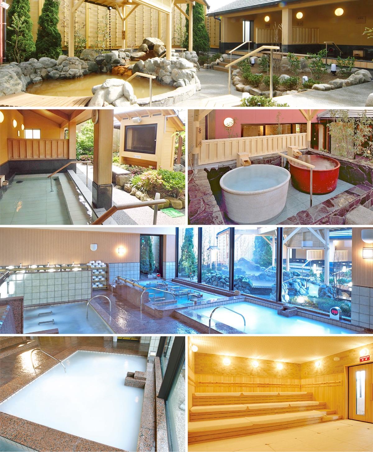 館内は広く、複数種類のサウナ室・水風呂・休憩スペースを備えています。